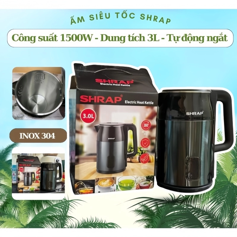 Ấm Siêu Tốc SHARP 3L Cách Nhiệt An Toàn Và Tiện Lợi, Nhanh Sôi (T16)