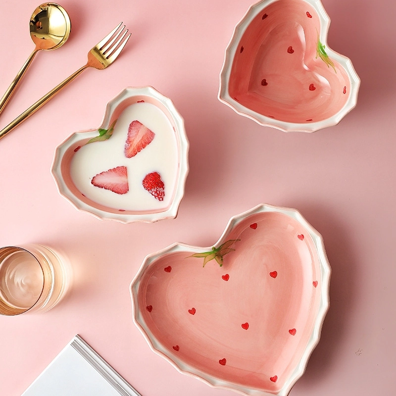 Bát Sứ Trái Tim Họa Tiết Dâu Hồng (T64)