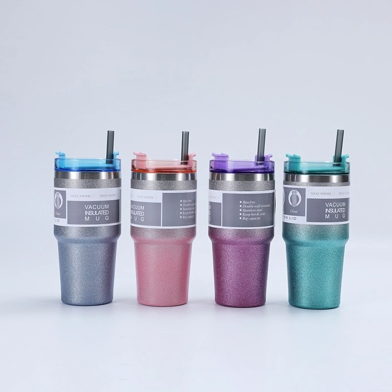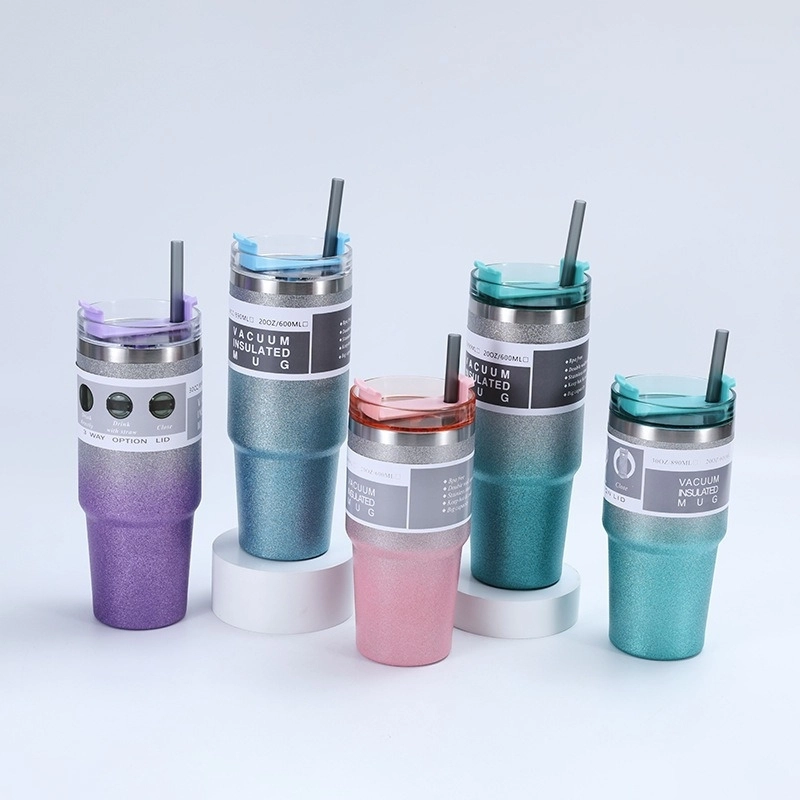 Bình Giữ Nhiệt inox Sơn Nhũ kim tuyến có ống hút 600ML