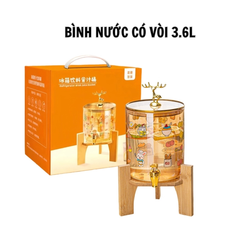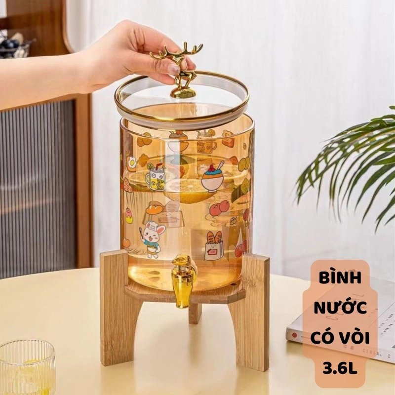 Bình Nước Hổ Phách Có Vòi Kèm Đế 3.6L