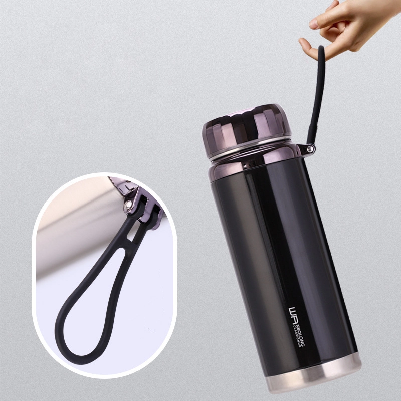 - Phần nắp vặn cứng cáp và chắc chắn kết hợp với dây treo giúp bạn cầm nắm, di chuyển thoải mái mà không lo bị đổ hay rỉ nước ra bên ngoài.