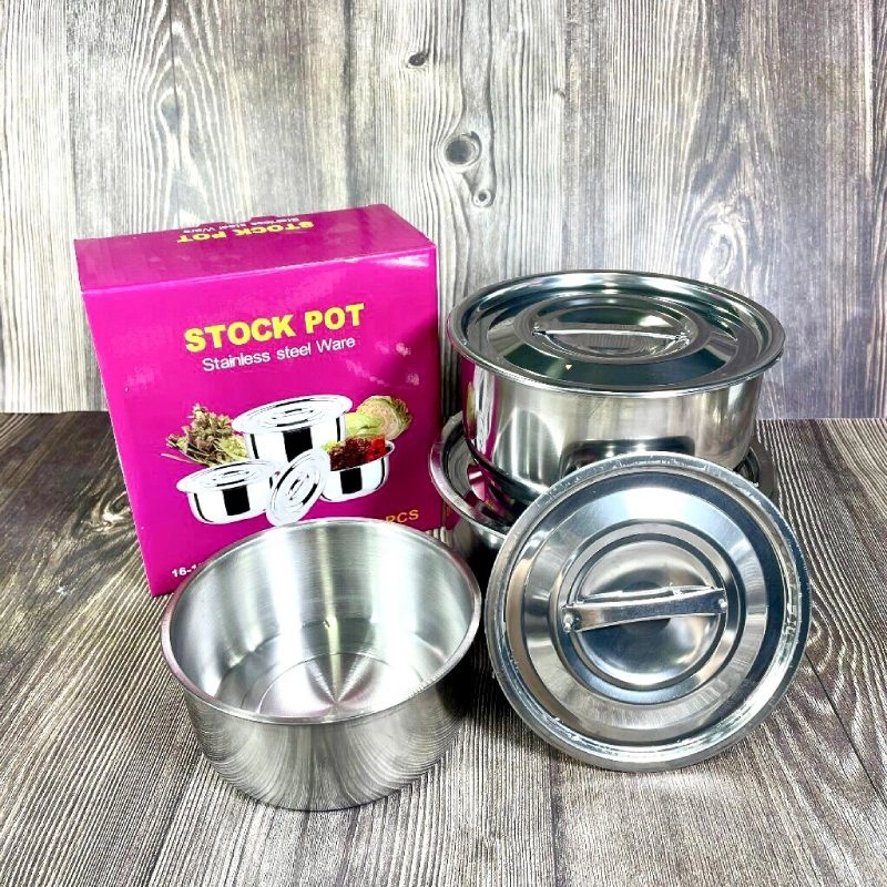 BỘ 3 NỒI INOX STOCK POT VỎ HỒNG