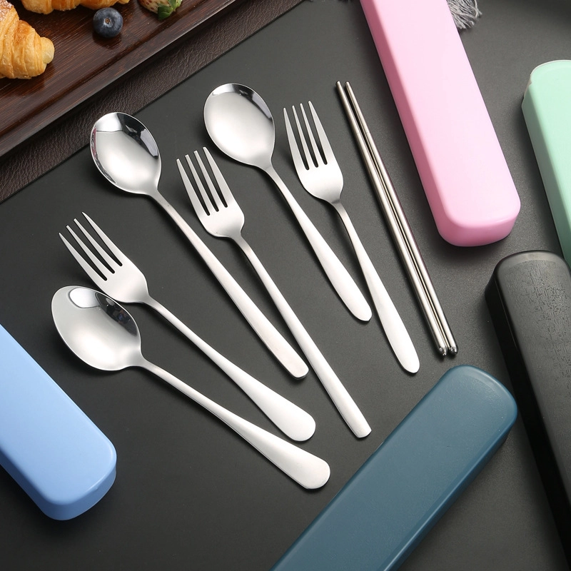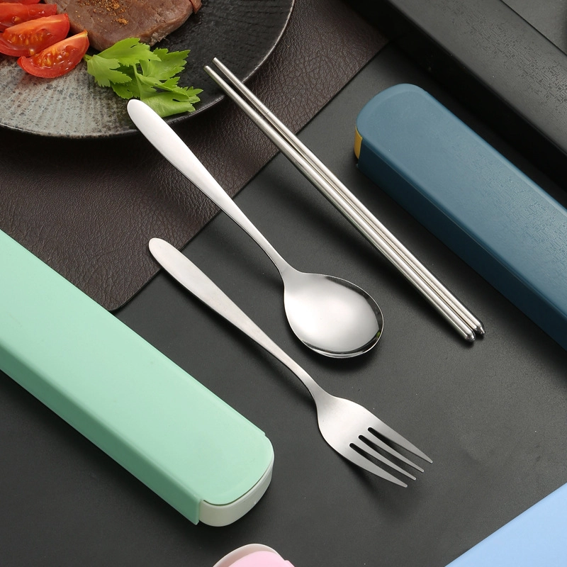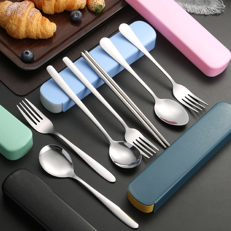 Bộ đũa + muỗng + thìa inox có hộp lúa mạch