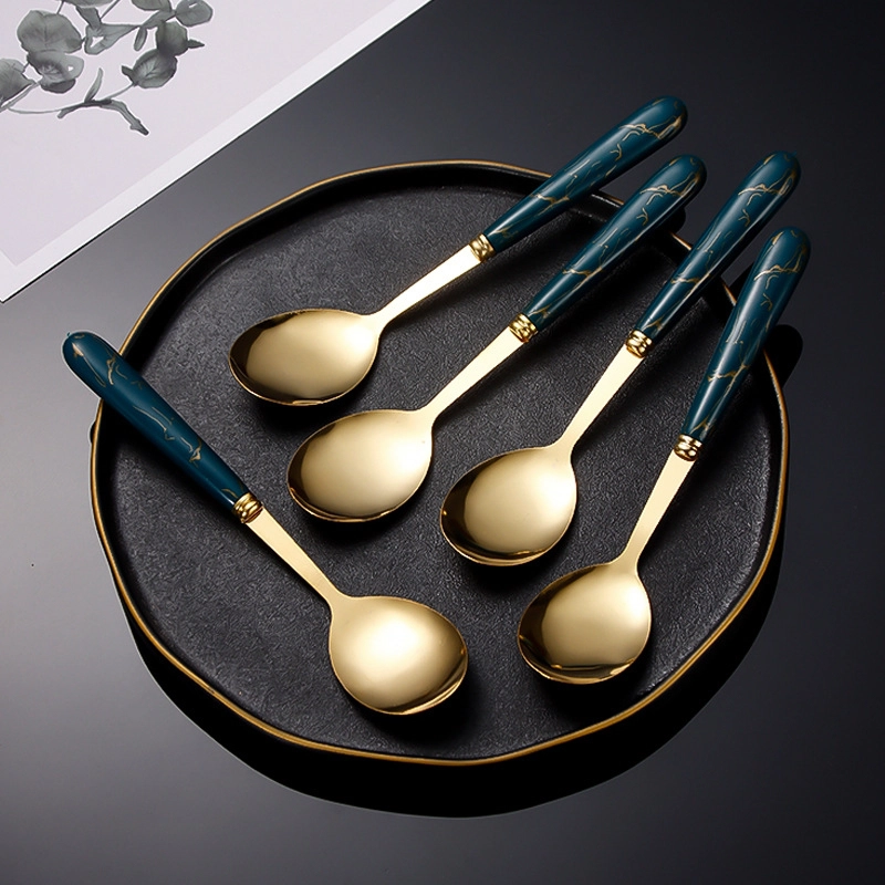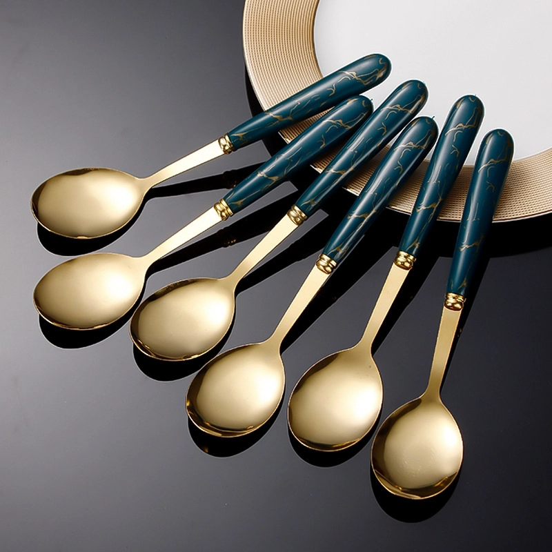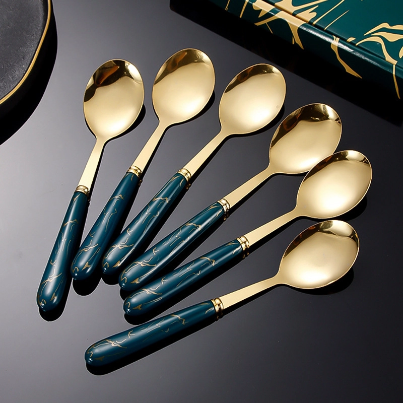 Bộ Thìa Cao Cấp Thép Không Gỉ 6 Cái Xanh Ngọc Lam Vân Đá Fullbox