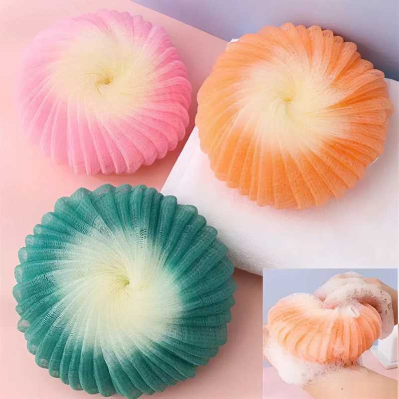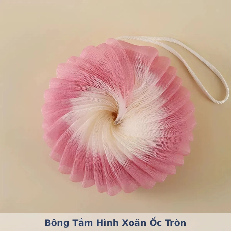 Thiết Kế Xoắn Ốc Độc Đáo: Hình dáng tròn cùng cấu trúc các lớp lưới đan xoắn ốc không chỉ đẹp mắt mà còn tạo ra hàng ngàn túi khí nhỏ. Cấu trúc này giúp tăng gấp đôi khả năng tạo bọt so với bông tắm thông thường. Chỉ cần một lượng sữa tắm nhỏ, bạn đã có lớp bọt dày mịn, bông xốp.