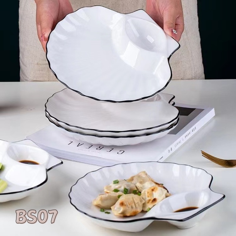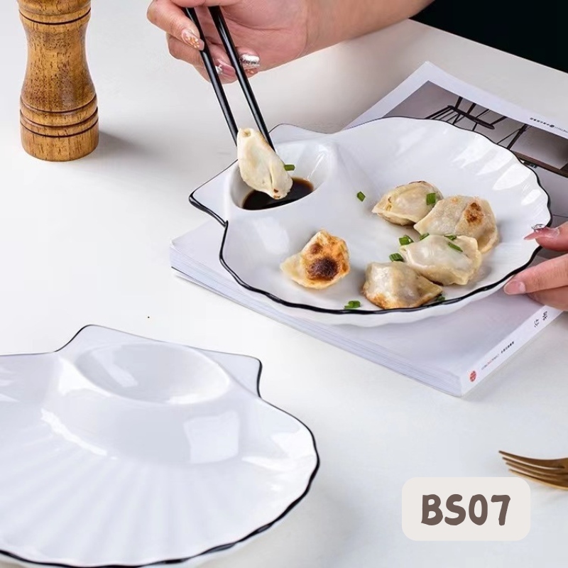 BS07: Đĩa Sò Size 9 Viền Đen Kèm Bát Chấm Tiện Lợi (T48)
