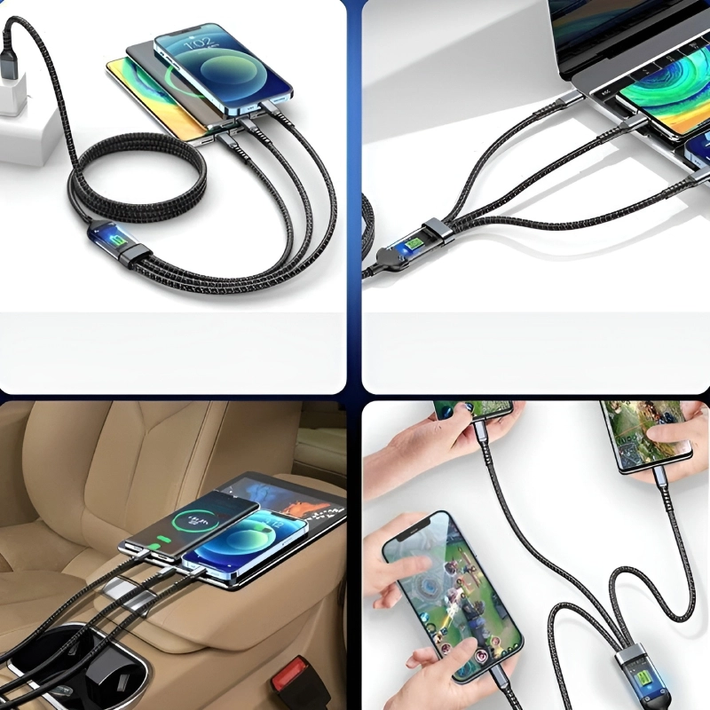 - Cho dù đó là điện thoại di động, máy tính bảng hay các thiết bị USB khác, chỉ một cáp dữ liệu có thể đáp ứng nhu cầu sạc của ba thiết bị cùng một lúc.