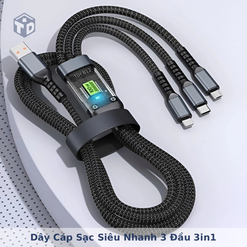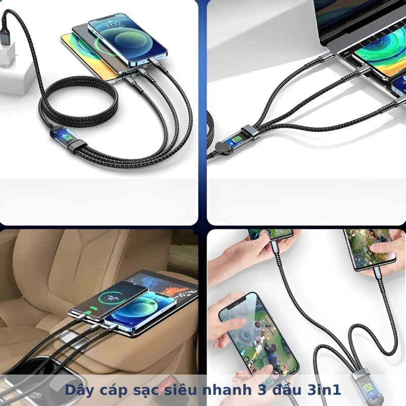 Dây cáp sạc siêu nhanh 3 đầu 3in1