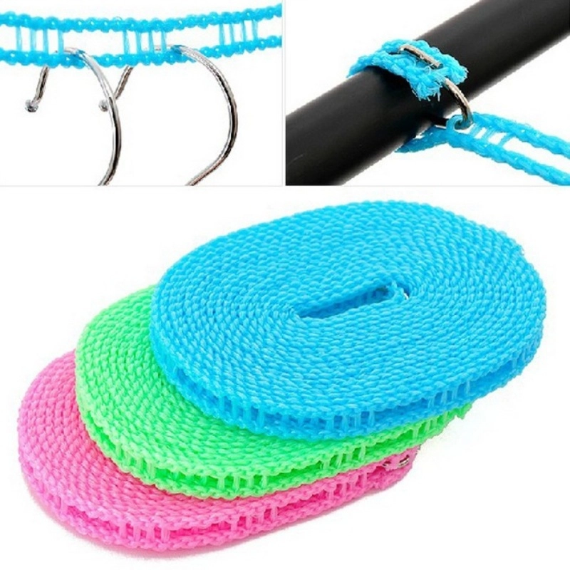 Mỗi dây có chiều dài 5m, đủ để phơi nhiều quần áo cùng lúc, phù hợp sử dụng trong gia đình, ký túc xá hoặc mang theo du lịch.