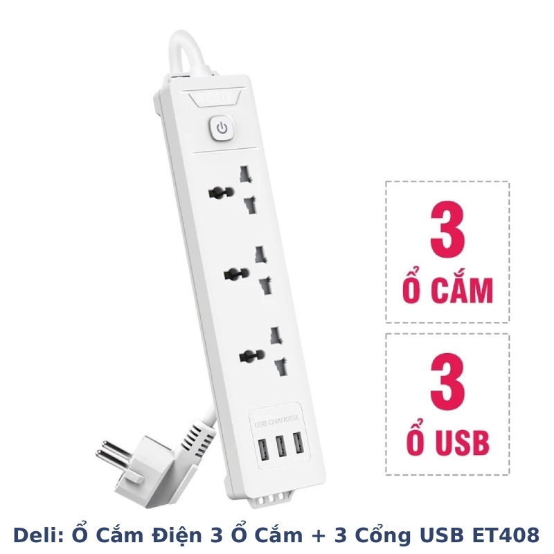 Đa Dụng 6 trong 1: Tích hợp 3 ổ cắm điện tiêu chuẩn (chuẩn quốc tế, tương thích với hầu hết các loại phích cắm) và 3 cổng sạc USB tiện lợi, cho phép bạn cấp nguồn và sạc cùng lúc 6 thiết bị khác nhau.