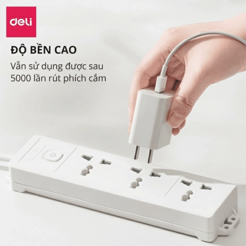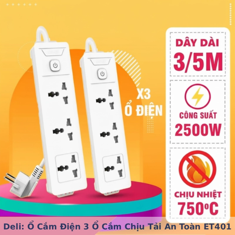 Ổ cắm điện Deli ET401 là giải pháp cung cấp điện đáng tin cậy và an toàn cho gia đình hoặc văn phòng của bạn. Với thiết kế thông minh và vật liệu chất lượng cao, sản phẩm này đảm bảo hiệu suất lâu dài và bảo vệ tối đa các thiết bị điện tử của bạn.