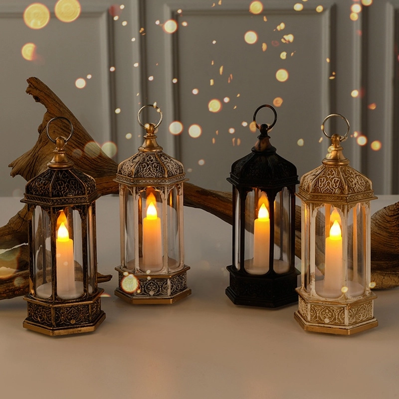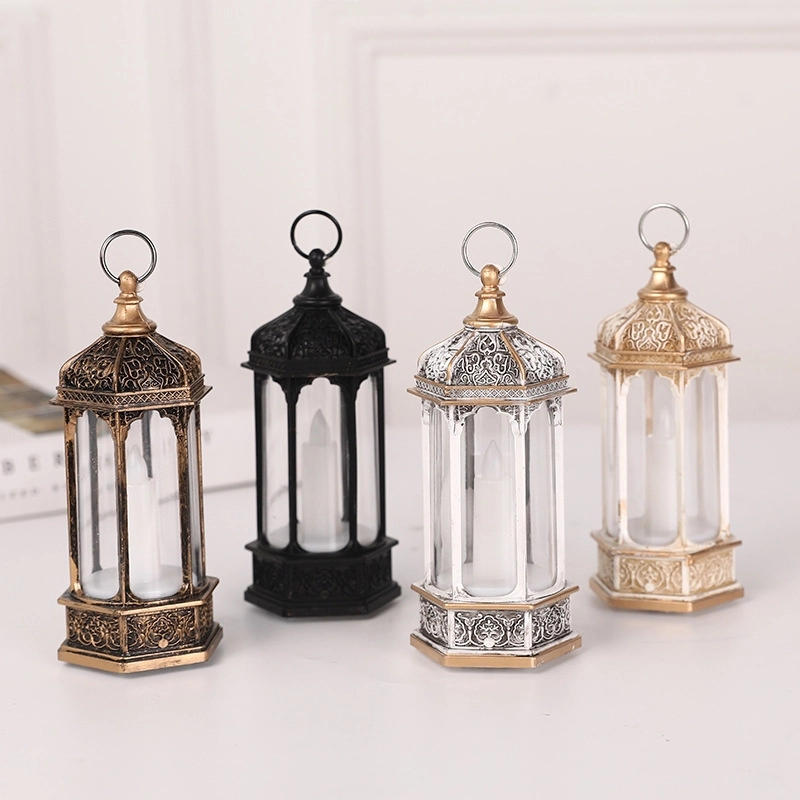 Cung Điện Đèn Lồng Gió Sáu Góc Ánh Sáng Đẹp Vintage - Đèn Nến Giáng Sinh Trang Trí Sân Trong Đen Trắng