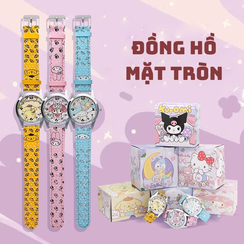 Đồng Hồ Đeo Tay Mặt Tròn Họa Tiết Cinnamoroll/ Kuromi/ Melody