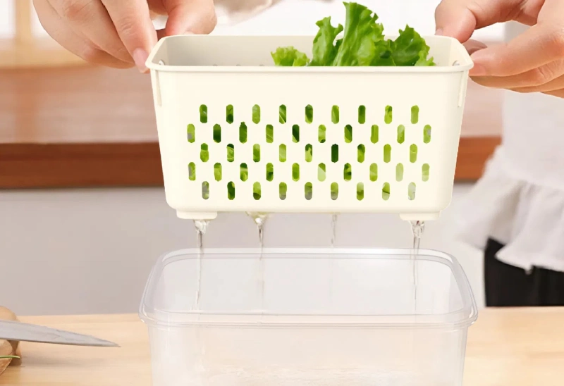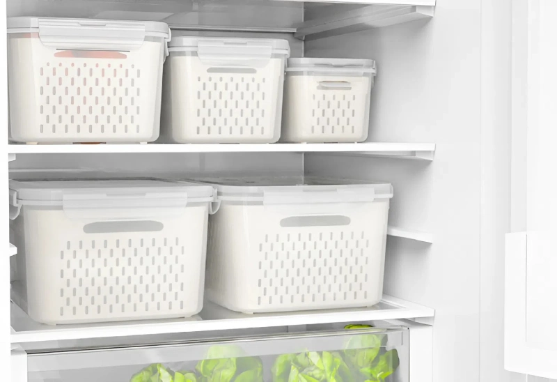 Rổ thoát nước tích hợp giúp kiểm soát độ ẩm tối ưu, hạn chế rau củ bị úng hay khô héo. Ron silicone kín khí kết hợp cùng 4 khóa gài chắc chắn giúp ngăn mùi lan trong tủ lạnh, giữ trọn hương vị và độ tươi của thực phẩm.