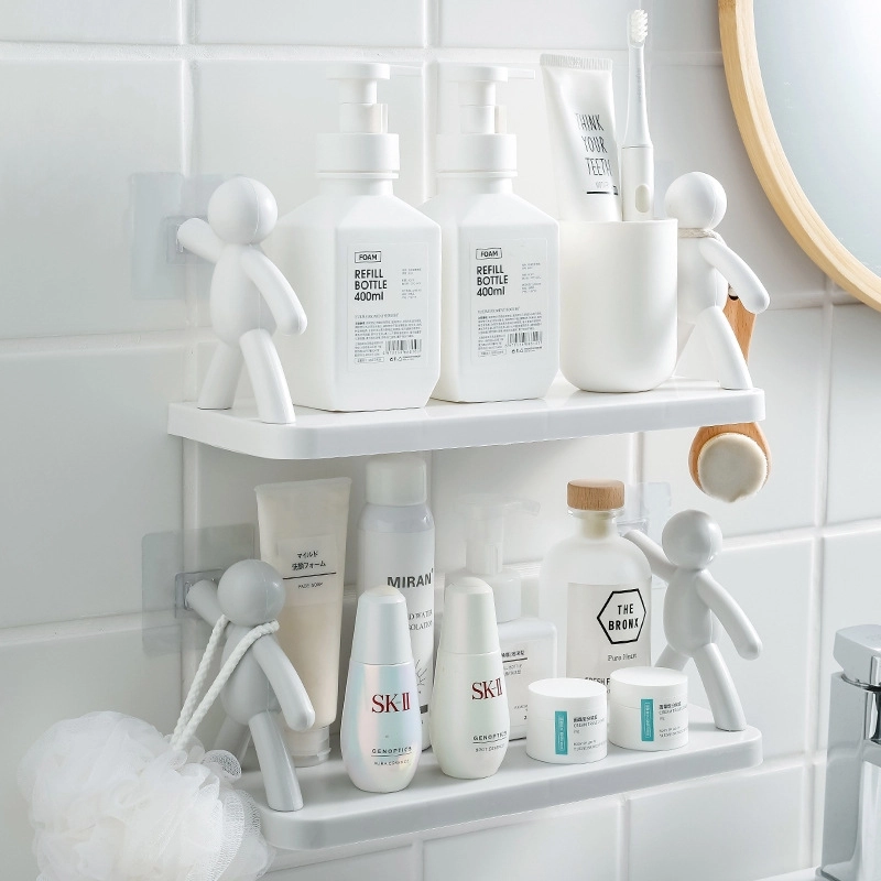Hai hình nhân của kệ có thể làm móc treo thêm khăn, bông tắm hay bàn chải, tối ưu không gian sử dụng.