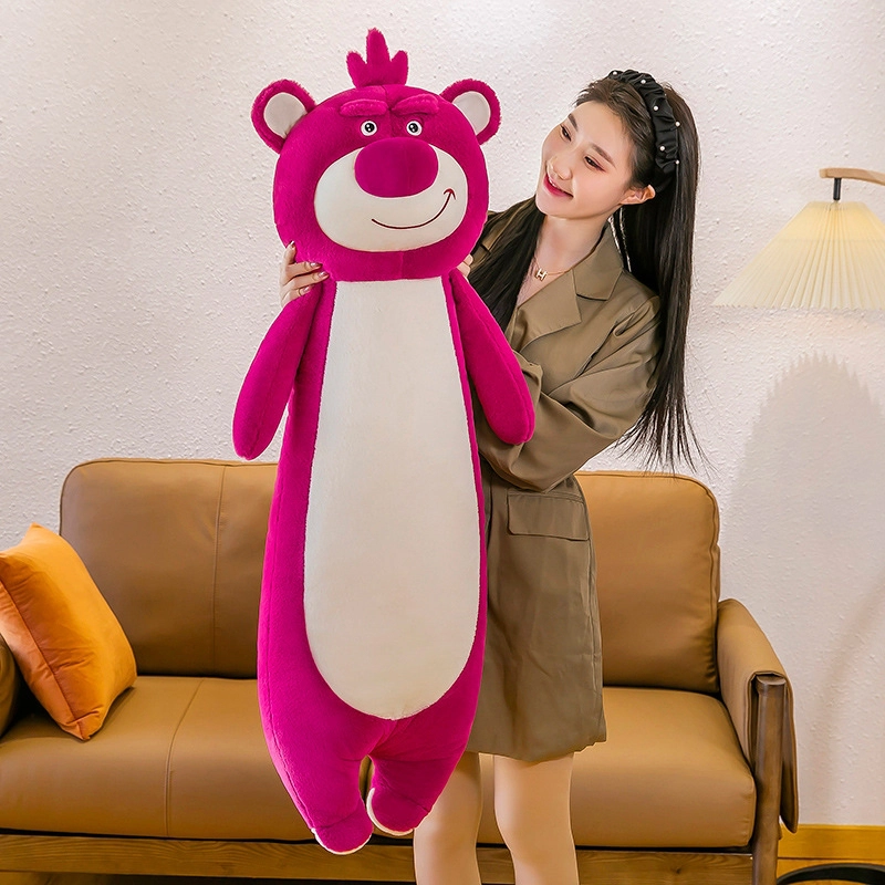 Gối ôm khổng lồ với thiết kế gấu dâu đỏ mận cực kỳ ấn tượng, chất liệu lông mịn và bông gòn cao cấp giúp bạn dễ chịu suốt cả đêm.