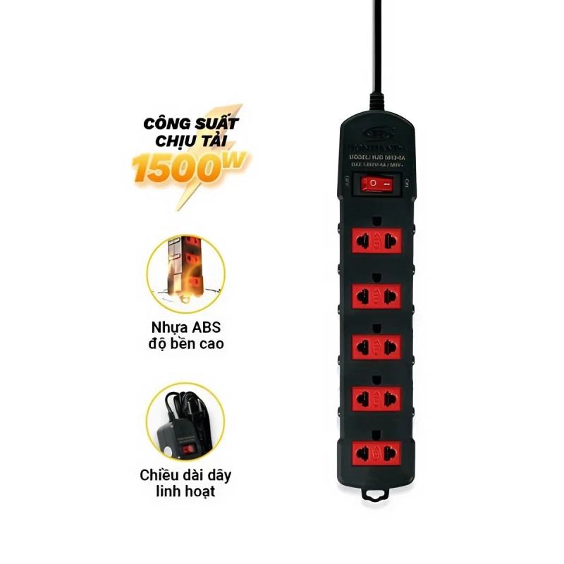 Chiều dài dây ấn tượng 5 mét giúp bạn thoải mái cấp nguồn cho các thiết bị ở xa, không còn lo lắng về khoảng cách giữa thiết bị và nguồn điện. Lý tưởng cho phòng khách, phòng ngủ lớn, hoặc bàn làm việc cần nhiều không gian.