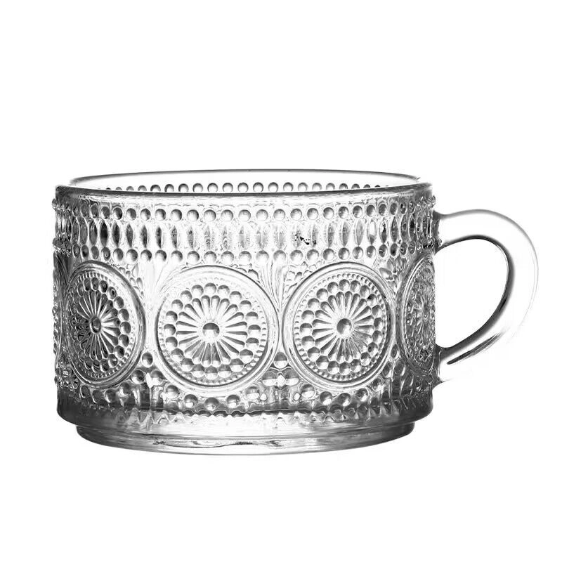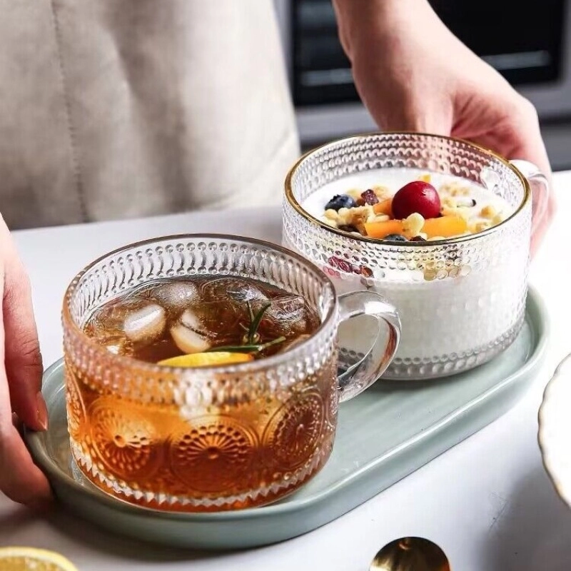 Set 2 Cốc Thủy Tinh Họa Tiết Đồng Tiền Có Quai Cầm 480ML