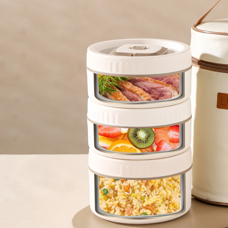 Hộp Cơm 3 Ngăn Có Túi xách màu trắng sữa