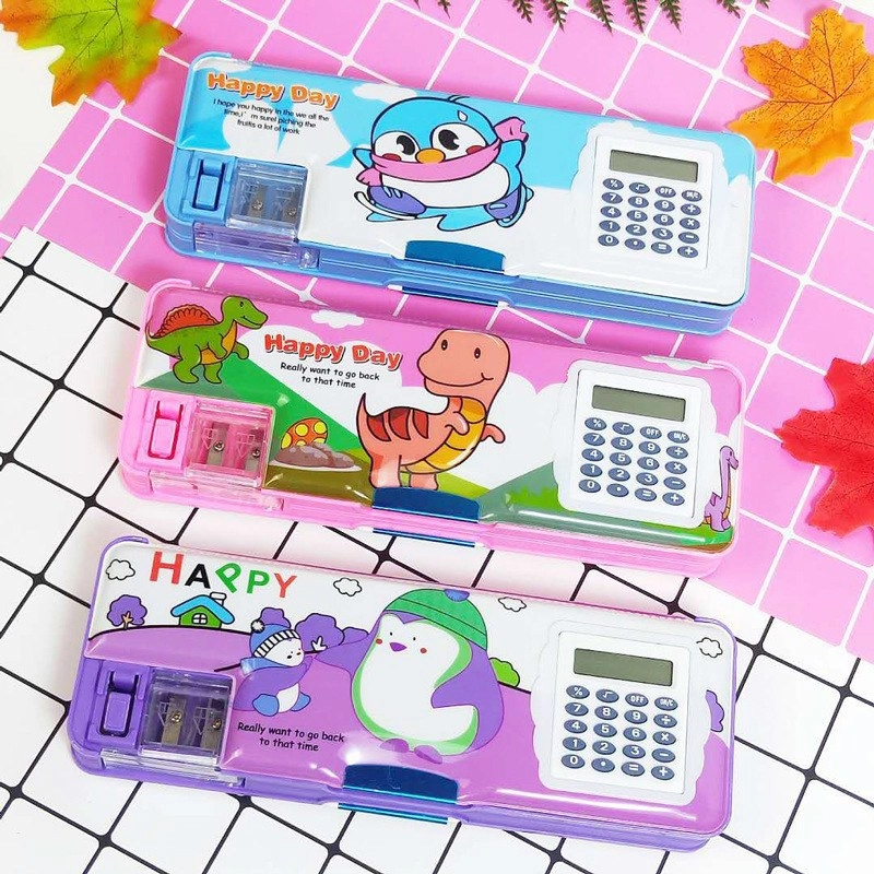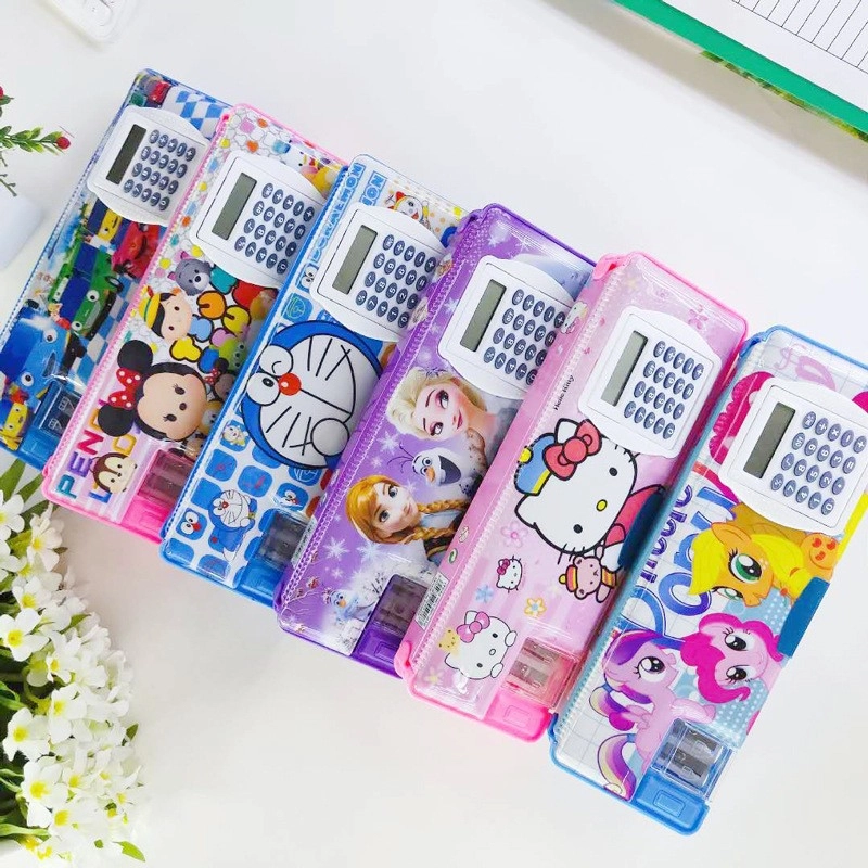 Hộp Đựng Bút 2 Mặt hoạt hình Có Máy Tính