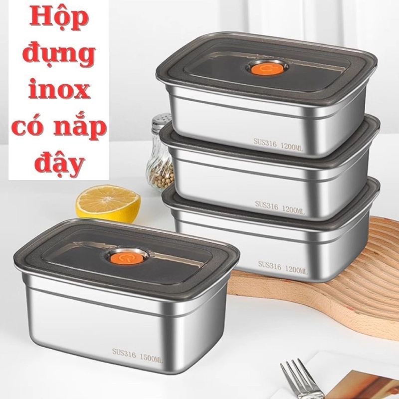 - Set hộp inox đi kèm với nắp nhựa khít kín, giúp ngăn chặn sự tiếp xúc của không khí và vi khuẩn từ bên ngoài, từ đó bảo quản thực phẩm tốt hơn và ngăn ngừa sự mất màu, mất mùi và mất chất dinh dưỡng.