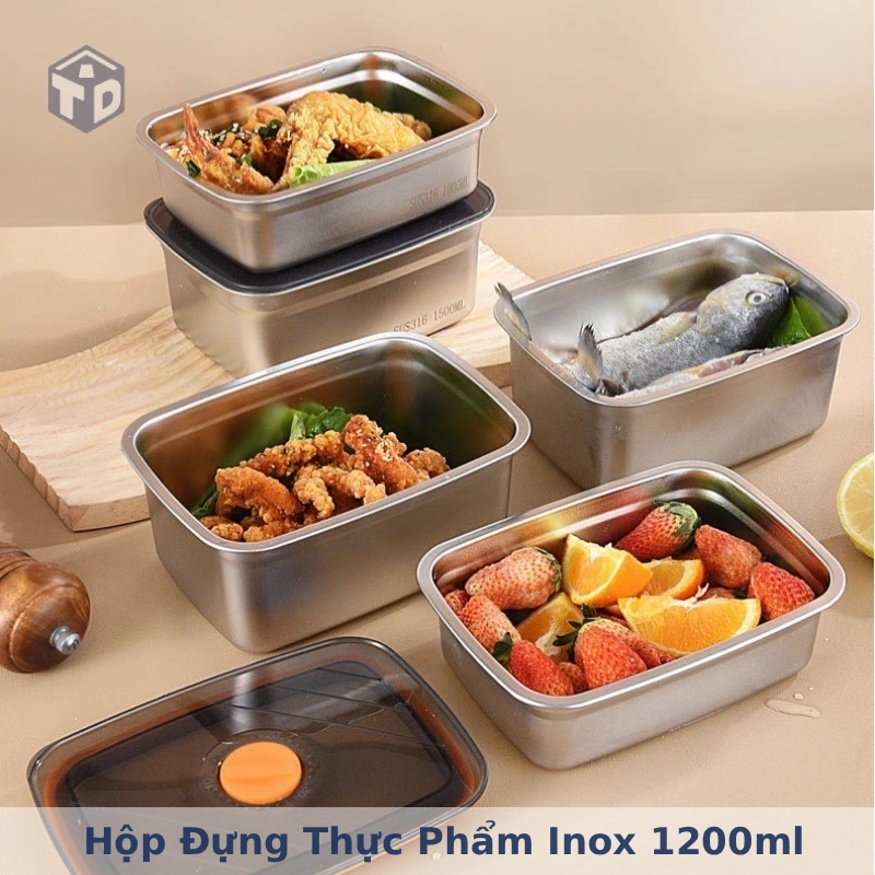 Hộp Đựng Thực Phẩm Inox 1200ml Có Nắp Đậy Kín