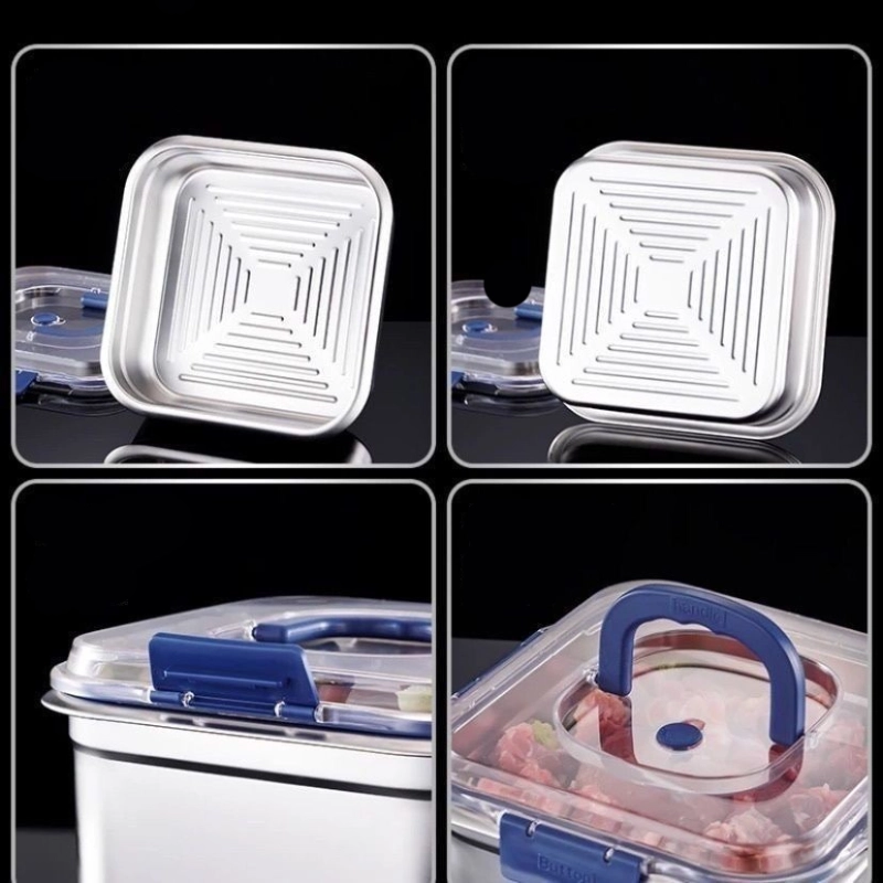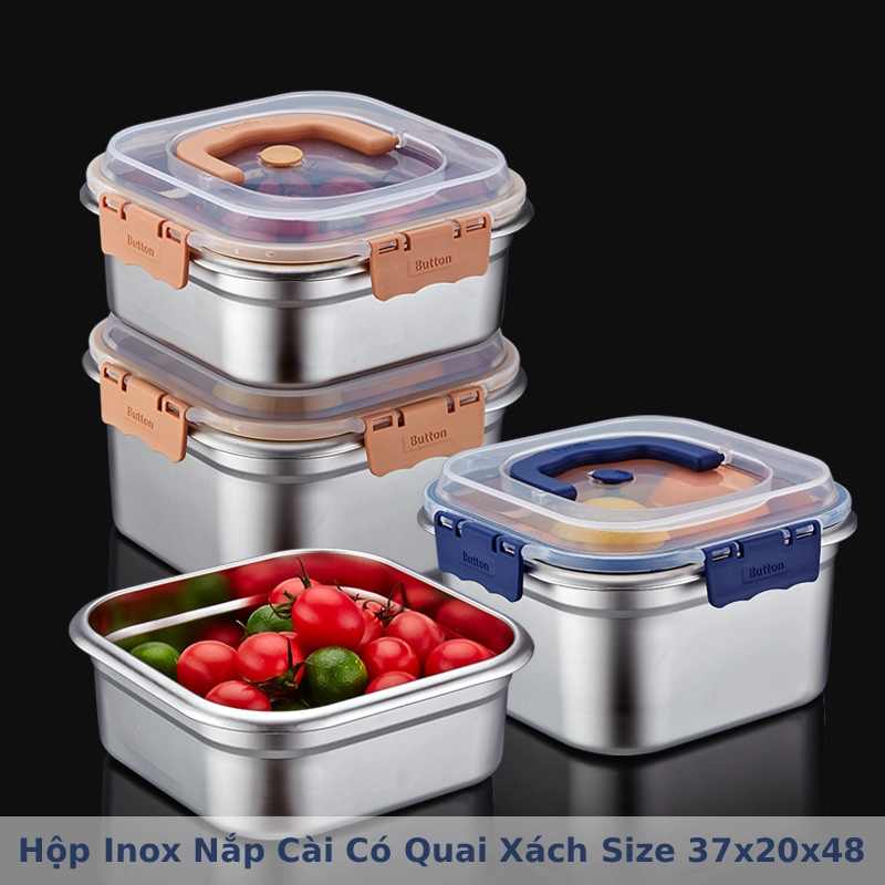 - Hộp được làm từ inox sáng bóng, bền bỉ, không gỉ sét và an toàn cho sức khỏe phù hợp để đựng nhiều loại thực phẩm khác nhau mà không lo ám mùi.
