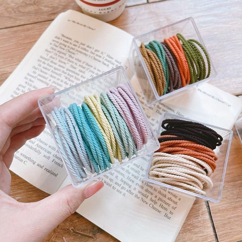 Hộp Mica 100 Dây Chun Buộc Tóc Hàn Quốc – Đủ màu, gọn gàng, bền chắc