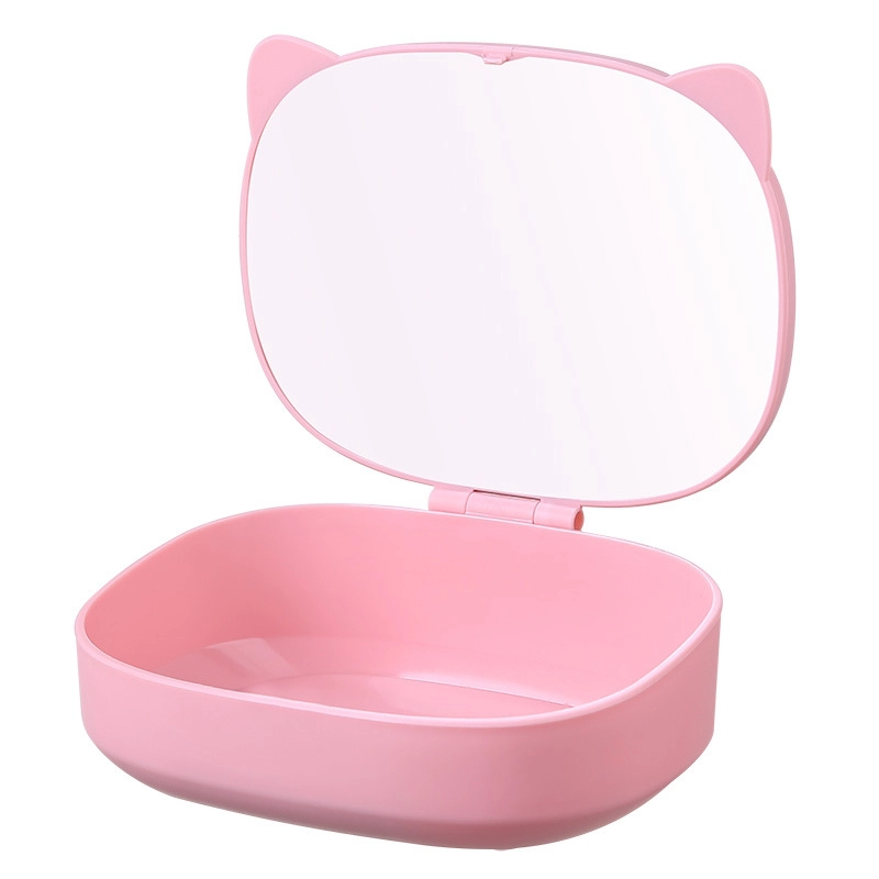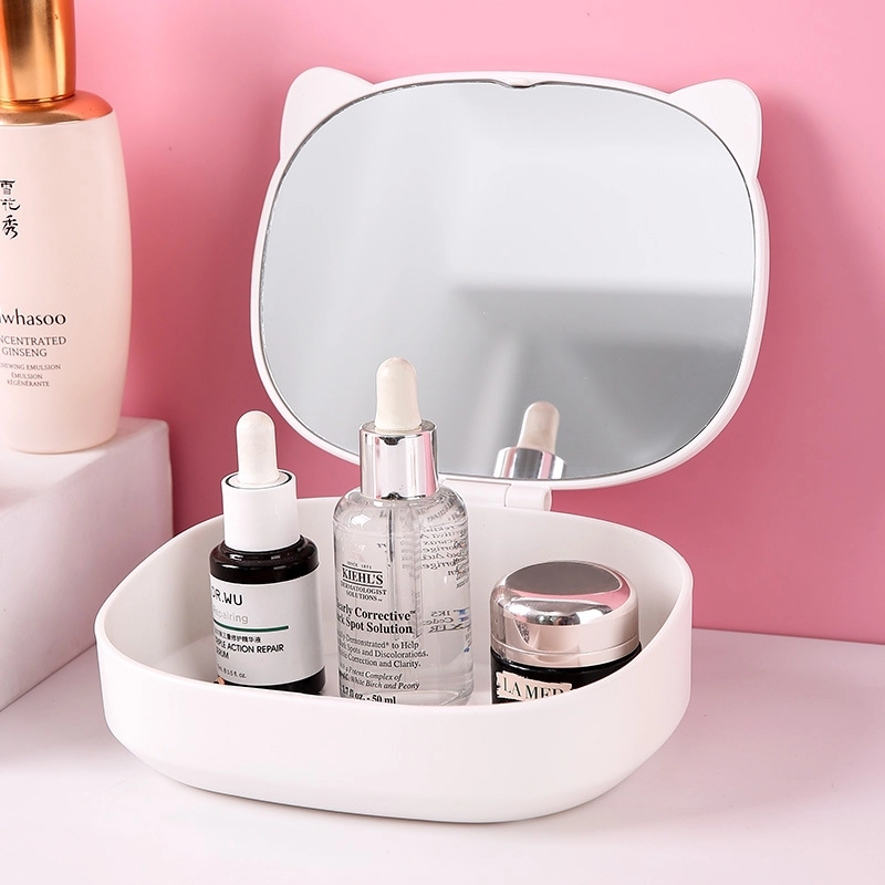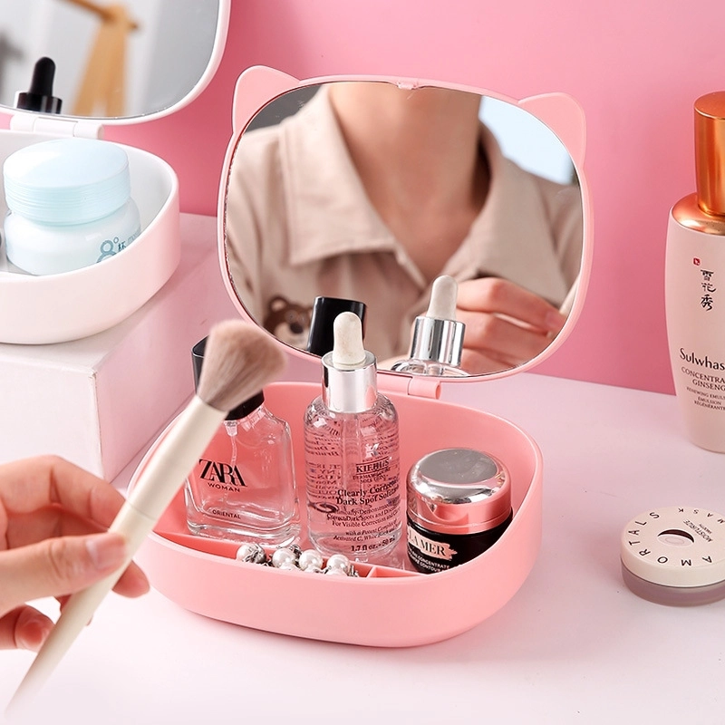 Hộp nhựa Gương Trang Điểm Để Bàn Gấp Gọn tai mèo