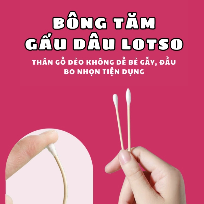 - Thân tăm bông được làm bằng gỗ cho tăm bông trở nên chắc chắn, thao tác chính xác và an toàn khi sử dụng, đồng thời thân thiện với môi trường.