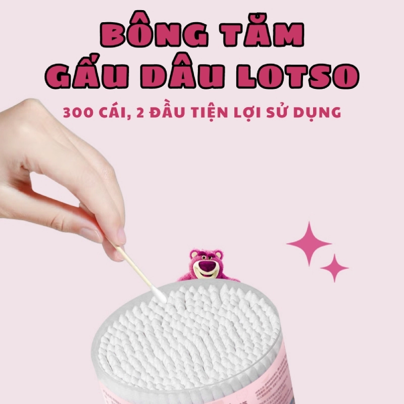 Hộp Tăm Bông Ráy Tai Ngoáy Mũi 2 Đầu Gấu Dâu màu hồng