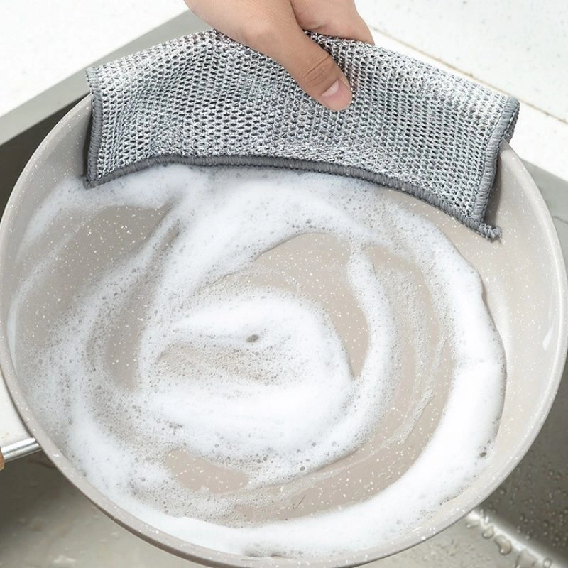 Trong gian bếp, chén dĩa và bề mặt thường bám dầu mỡ, vết bẩn khó chùi rửa. Với khăn lau bằng nhôm hình vuông, bạn sẽ có giải pháp thay thế hoàn hảo cho bóng len thép truyền thống – vừa sạch sâu, vừa an toàn cho đôi tay.
