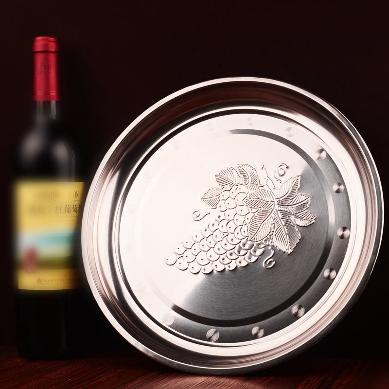 Khay Nho inox 26cm, đĩa nho tròn inox hình chùm nho - Công dụng: Đựng thực phẩm sống, chín, bưng bê thức ăn, bày bán bún đậu mẹt,...