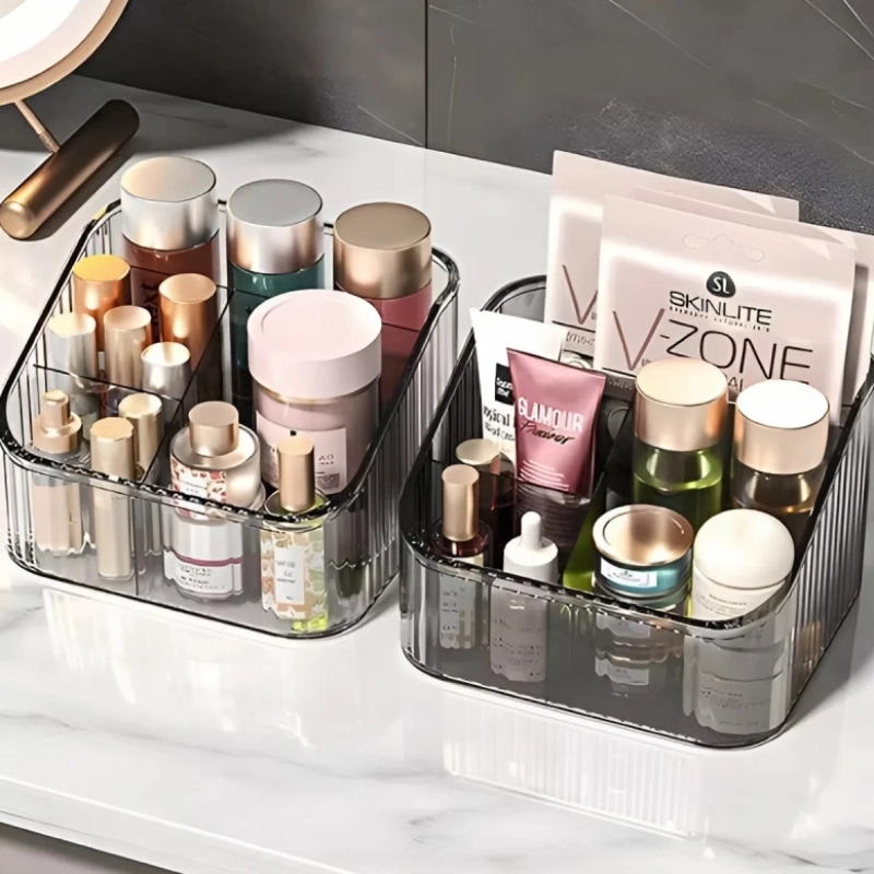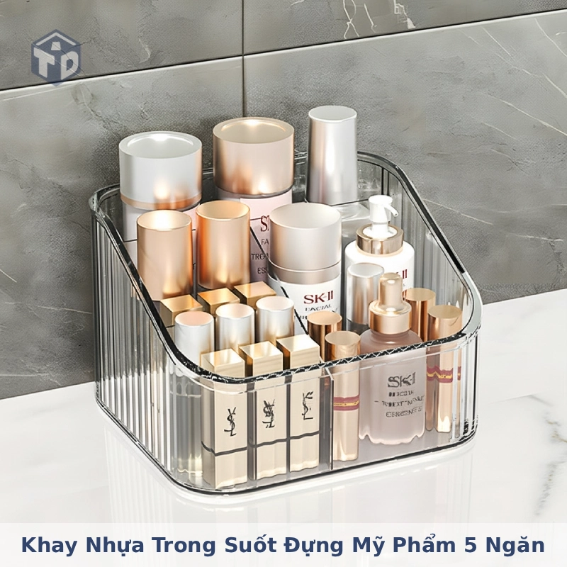 Đa năng: Không chỉ dùng để đựng mỹ phẩm, bạn còn có thể dùng khay để sắp xếp đồ dùng văn phòng phẩm, trang sức, phụ kiện tóc, hoặc các vật dụng nhỏ khác trong nhà.