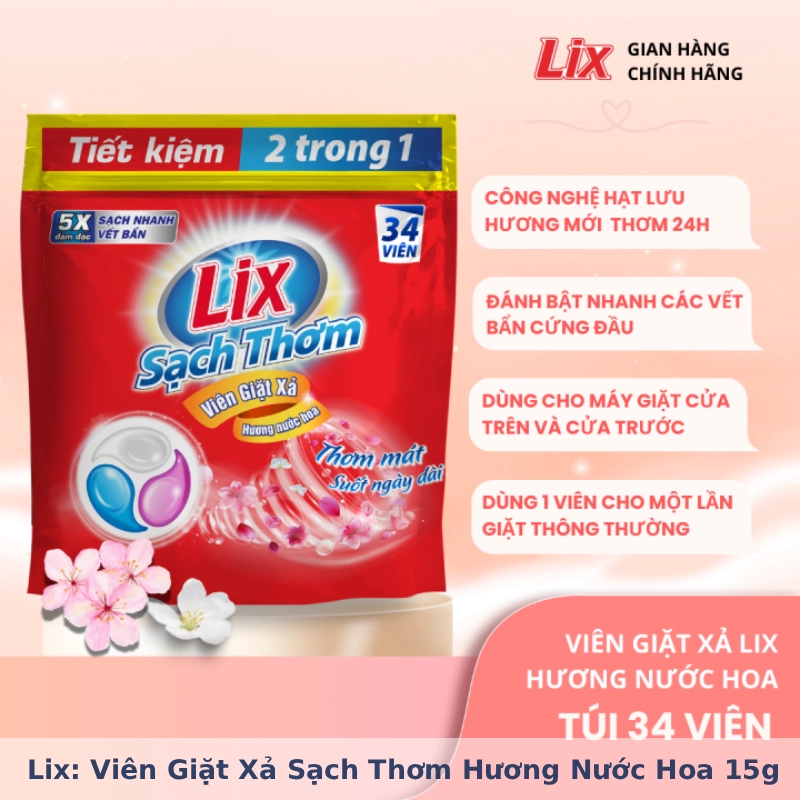 Viên giặt xả Lix – Giặt sạch vượt trội, hương thơm chuẩn nước hoa, cho quần áo luôn tinh tươm và quyến rũ.