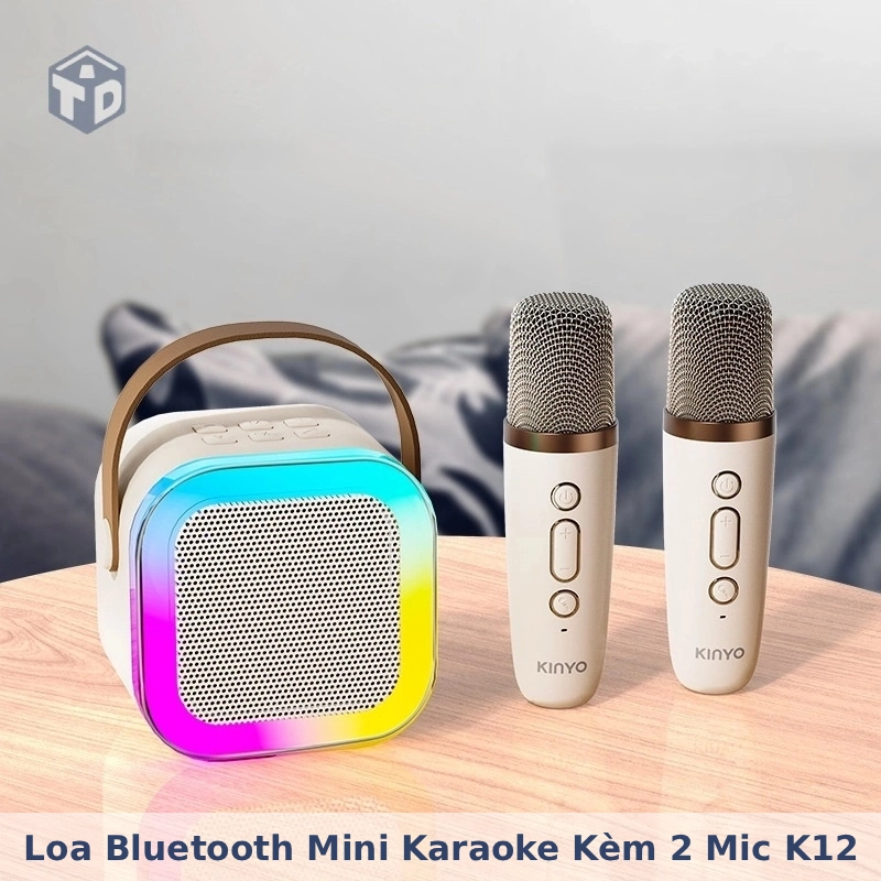 Loa Bluetooth Mini Karaoke Kèm 2 Mic K12 Không Dây (USB, MicroSD, FM) – Âm thanh mạnh mẽ, tiện lợi di chuyển
