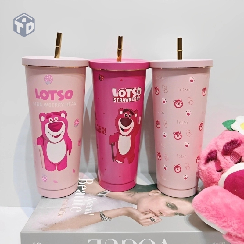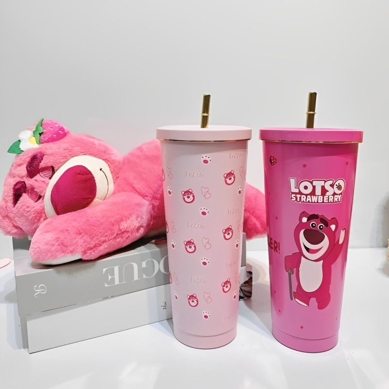 Cốc inox Lotso gấu hồng Giữ Nhiệt Có Ống Hút 750ml