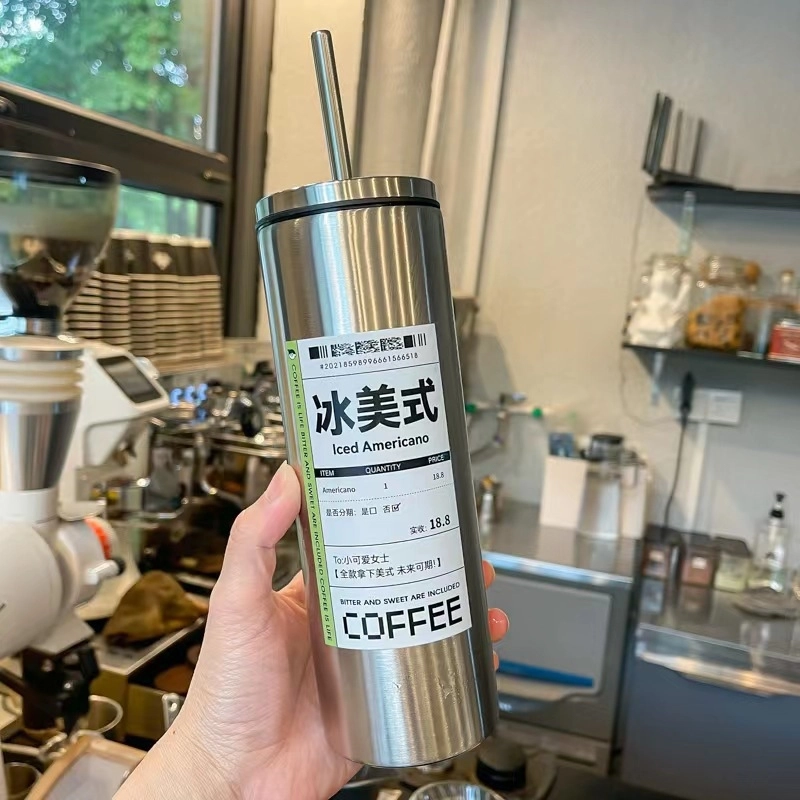 Ly inox 750ml kèm ống hút màu trắng cao coffee