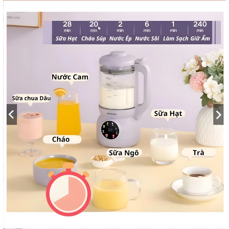 Bao gồm: nấu cháo, nấu nước, pha trà, sinh tố, làm sữa đậu, ngô, ngũ cốc (khô hoặc ngâm) và chế độ giữ ấm.