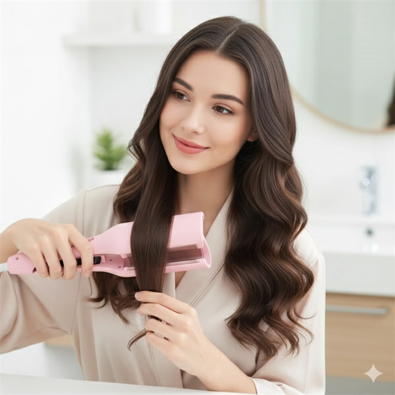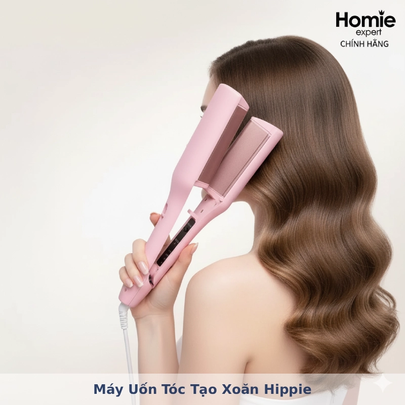 Máy Uốn Tóc Xoăn Sóng Nước Hippie – Uốn nhanh, giữ nếp lâu, cho mái tóc mềm mại và bồng bềnh tự nhiên.