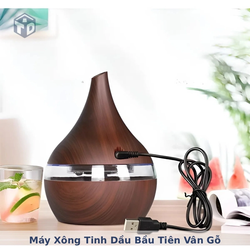 Máy xông tinh dầu với thiết kế hình Giọt Nước (hay còn gọi là Bầu Tiên) độc đáo, kết hợp cùng lớp vỏ vân gỗ màu nâu trầm ấm áp, mang lại vẻ đẹp tinh tế, hiện đại nhưng vẫn gần gũi với thiên nhiên.