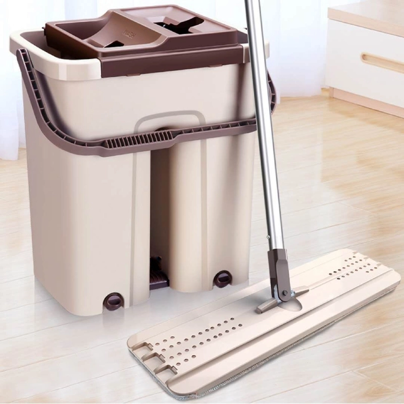 Bộ cây lau nhà thông minh tích hợp thùng tự vắt, giúp tiết kiệm nước tối đa và giữ cho không gian luôn sạch sẽ.