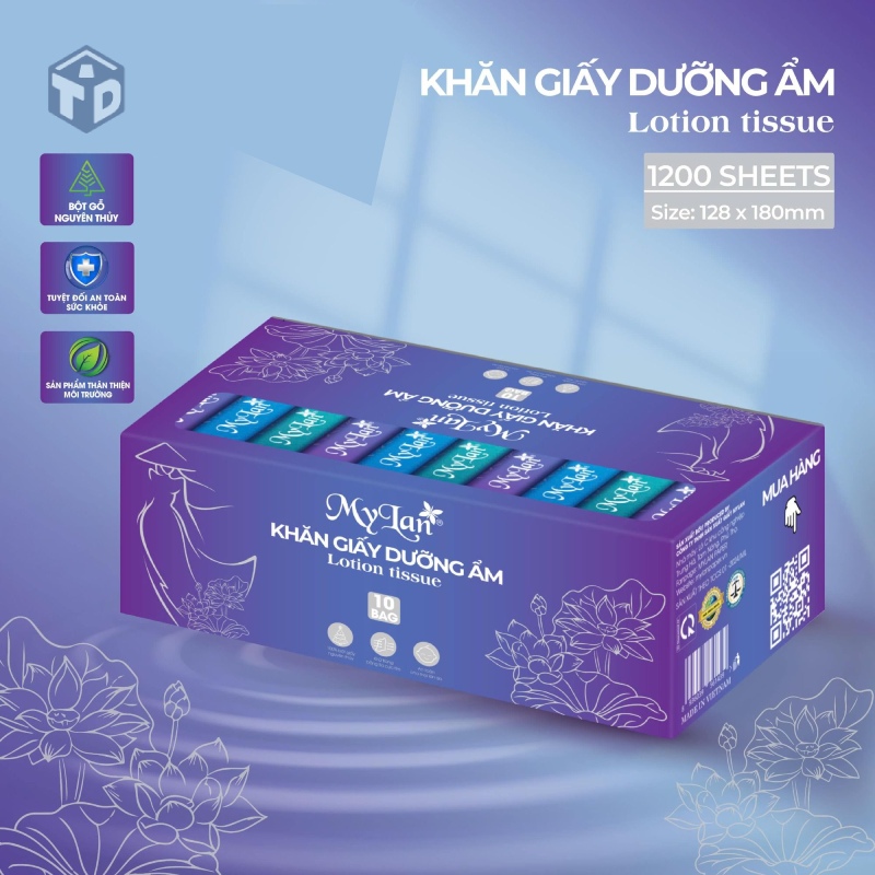 Khăn giấy dưỡng ẩm được thiết kế tiện lợi trong hộp chữ nhật nhỏ gọn, với tông màu tím sang trọng. Mỗi gói chứa 120 tờ, thích hợp dùng cho gia đình, văn phòng hoặc mang theo bên mình. Sản phẩm mềm mại, giàu độ ẩm tự nhiên, an toàn cho da kể cả làn da nhạy cảm.