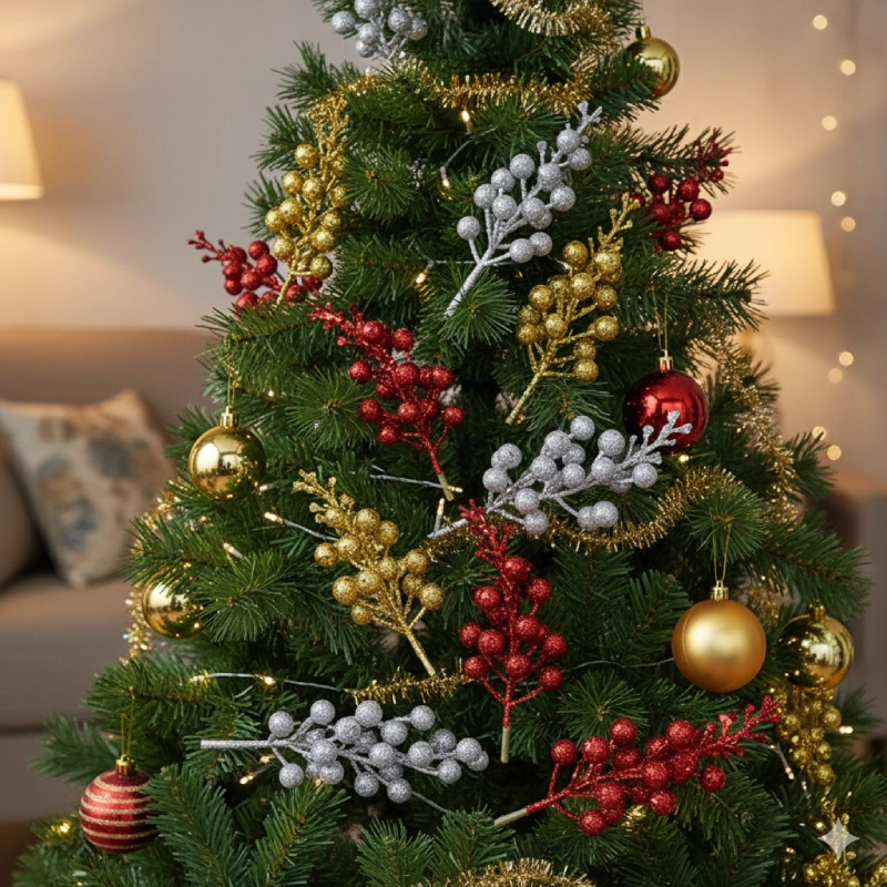 Cành trái cherry kim tuyến – Điểm nhấn hoàn hảo cho mùa Giáng sinh