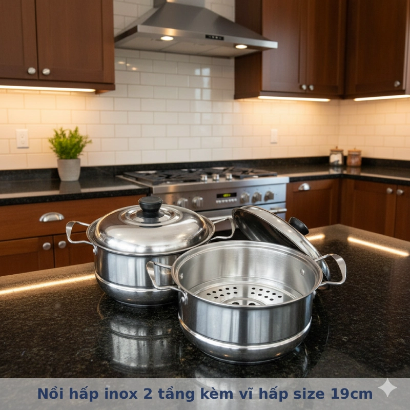Tên sản phẩm: Nồi hấp inox 2 tầng tiện dụng kèm vỉ hấp