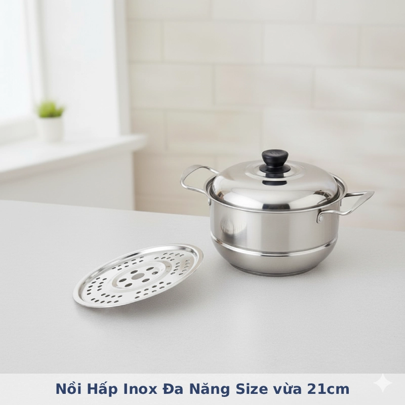 Sản phẩm được trang bị xửng hấp Inox cao cấp, bền đẹp và dễ vệ sinh. Chất liệu Inox không phơi nhiễm chất độc hại. không phản ứng với thực phẩm, đảm bảo giữ trọn hương vị và dinh dưỡng cho món ăn.
