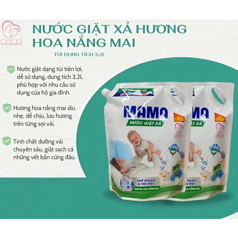 Nước Giặt Mama dạng túi tiện lợi không chỉ giúp giặt sạch sâu mà còn chăm sóc từng sợi vải, giữ quần áo mềm mại và thơm mát. Với công thức dịu nhẹ, sản phẩm phù hợp cho cả làn da nhạy cảm – bảo vệ sức khỏe cả nhà trong từng mẻ giặt.