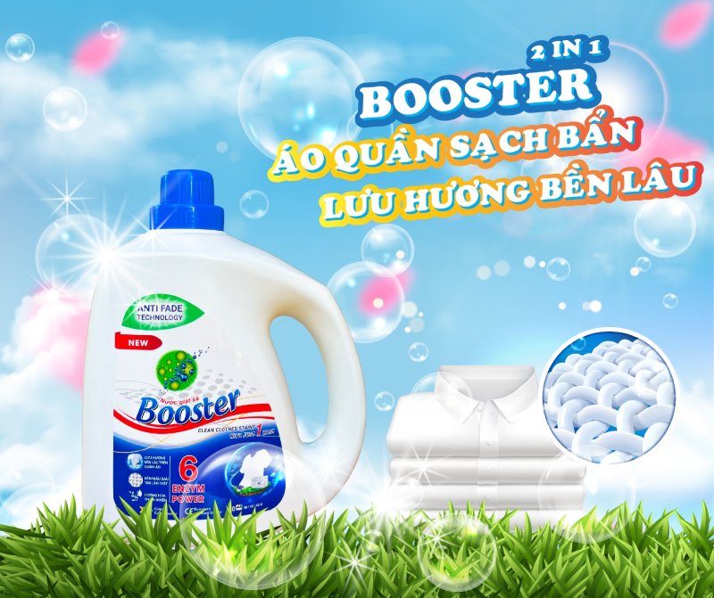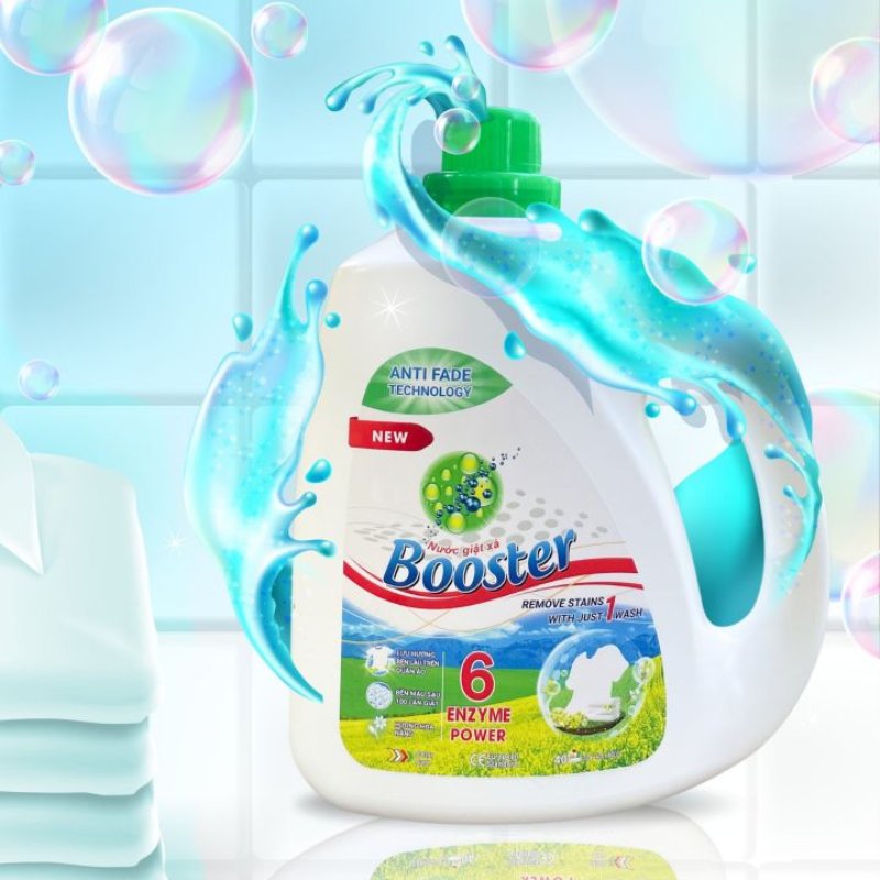 Với công nghệ 6 Enzyme Power, nước giặt xả Booster giúp đánh bay vết bẩn cứng đầu, giữ quần áo trắng sạch và bền màu như mới. Sản phẩm kết hợp hương hoa thiên nhiên dịu nhẹ, mang đến cảm giác thoải mái sau mỗi lần giặt.