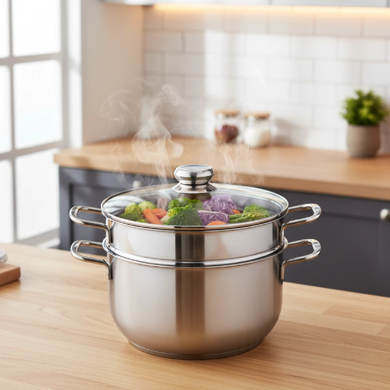 Bộ sản phẩm bao gồm 1 nồi nấu và 1 xửng hấp có thể tháo rời. Dễ dàng chuyển đổi công năng: dùng nồi để nấu canh, kho thịt hoặc dùng cả bộ để hấp bánh bao, hải sản, rau củ...
