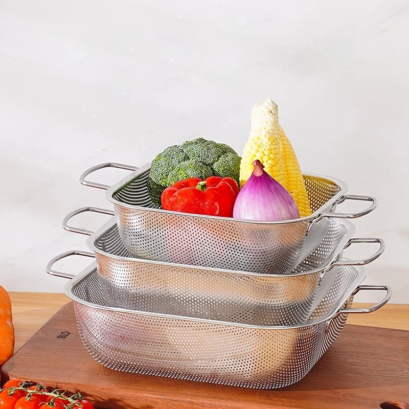 Rổ đúc inox hình chữ nhật là trợ thủ đắc lực giúp bạn bảo quản và sơ chế thực phẩm hiệu quả, với thiết kế chắc chắn và khả năng thoát nước tối ưu.